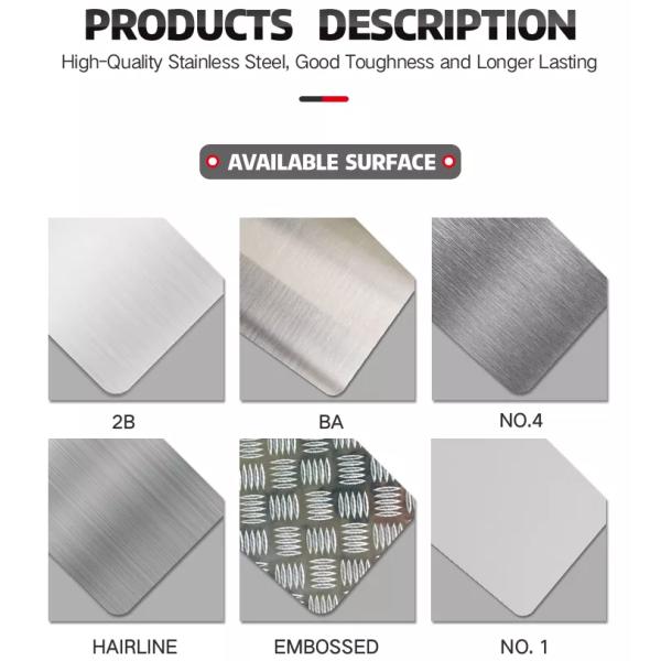 Surface finish : BA/2B/NO.1/NO.3/NO.4